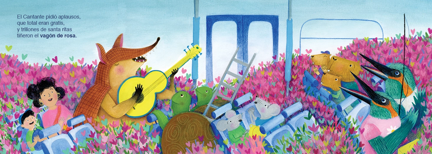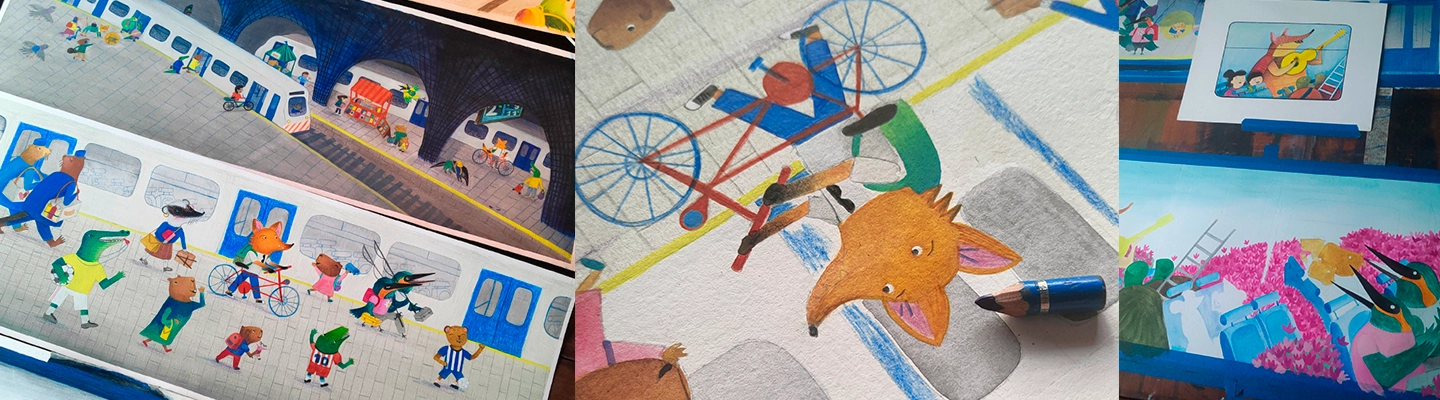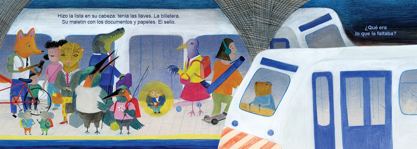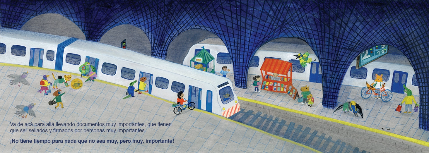 ‘Un Día Diferente’ cambia el rápido ritmo del mundo laboral y lo transforma en un viaje contemplativo. Con cada estación, sale de la ciudad y atraviesa los barrios coloridos, las casas cada vez más bajas y la naturaleza que entra por las ventanas, o con cada pasajero… hasta llegar al río, donde Ferroni sale de su burbuja y por fin respira a su ritmo. A través de la fauna sudamericana, esta historia nos interpela a mirar a nuestros vecinos, los otros con los que compartimos el vagón que llamamos vida, y finalmente, a nosotros mismos.